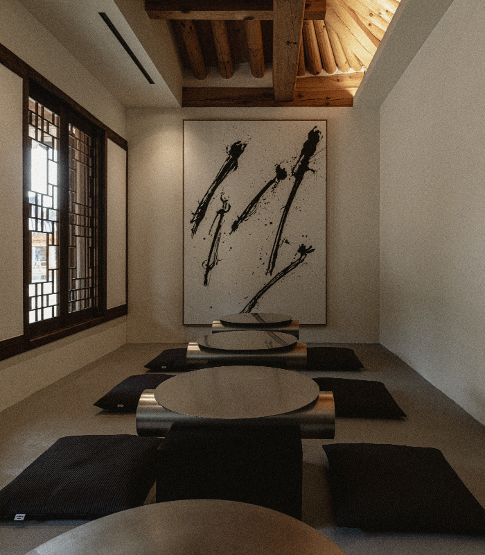 한옥이라면 내부를 수려하게 꾸밀 것이 아니라 이 경치를 창을 통해 빌려와야 (차경借景) 마땅합니다. 완성된 공간에서 특정 요소가 홀로 반짝이지 않도록 담묵의 디자인을 해왔습니다. 이러한 의도가 모두에게 잘 전달되길 기대합니다.