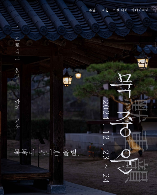 대관 안내 묘운 내의 모든 장소는 대관이 가능합니다. 묘운이 보여주는 ‘한옥다운’ 공간 속에서 즐겁고 고즈넉한 시간을 가져보세요. 묘운 대관을 통해 각종 공연과 전시, 전문/상업 촬영, 세미나, 웨딩, 상견례, 비즈니스 모임 등으로 활용하실 수 있습니다.